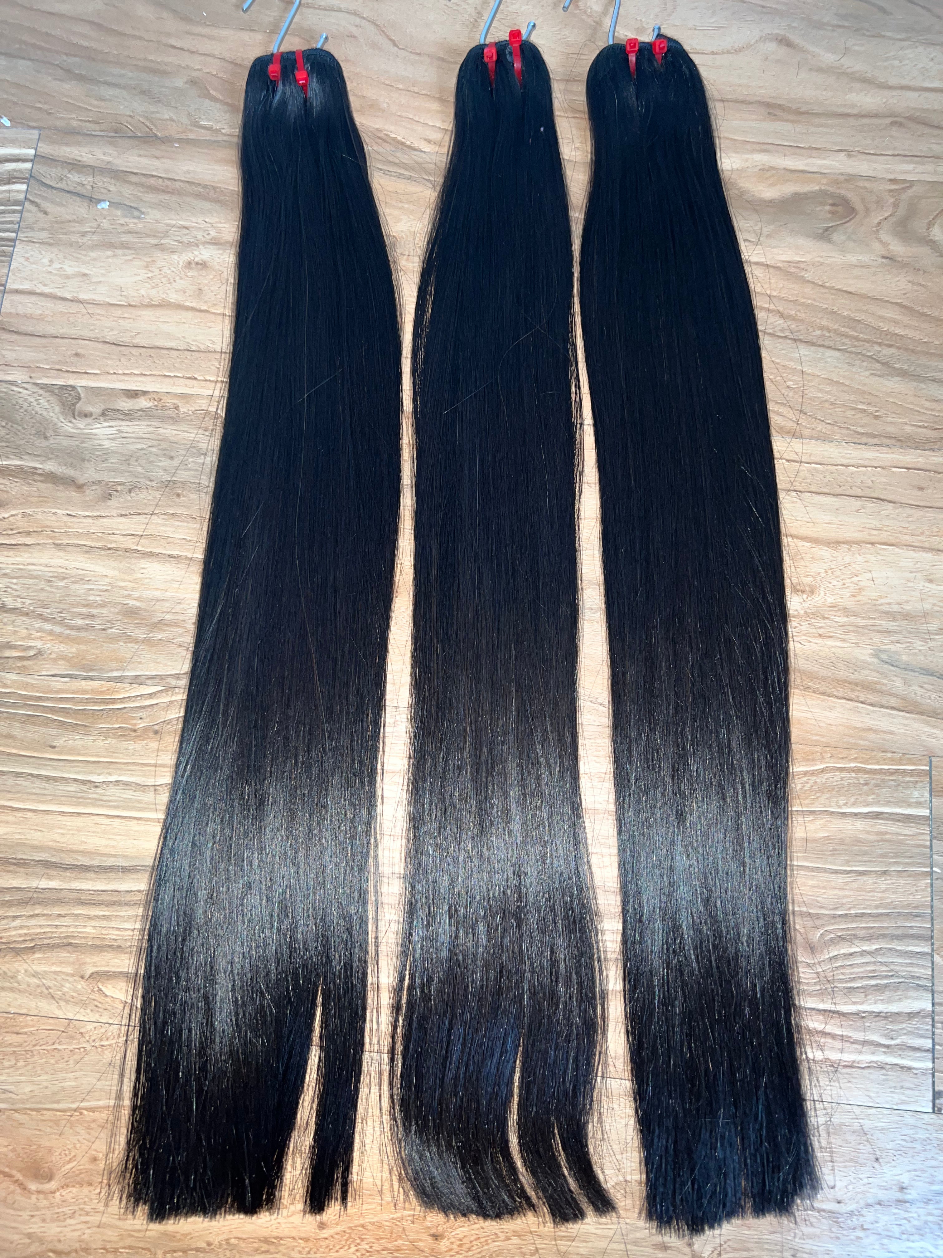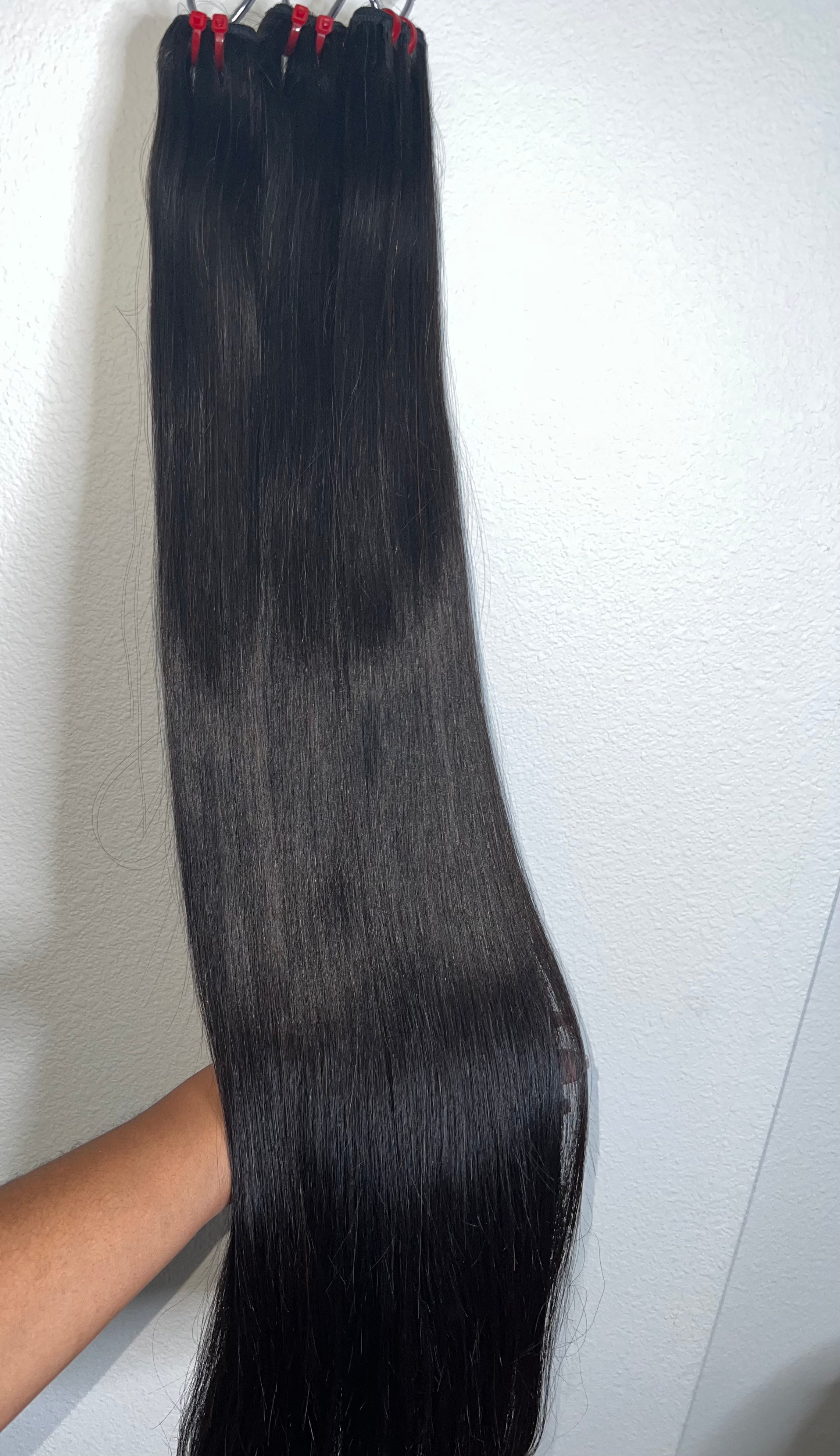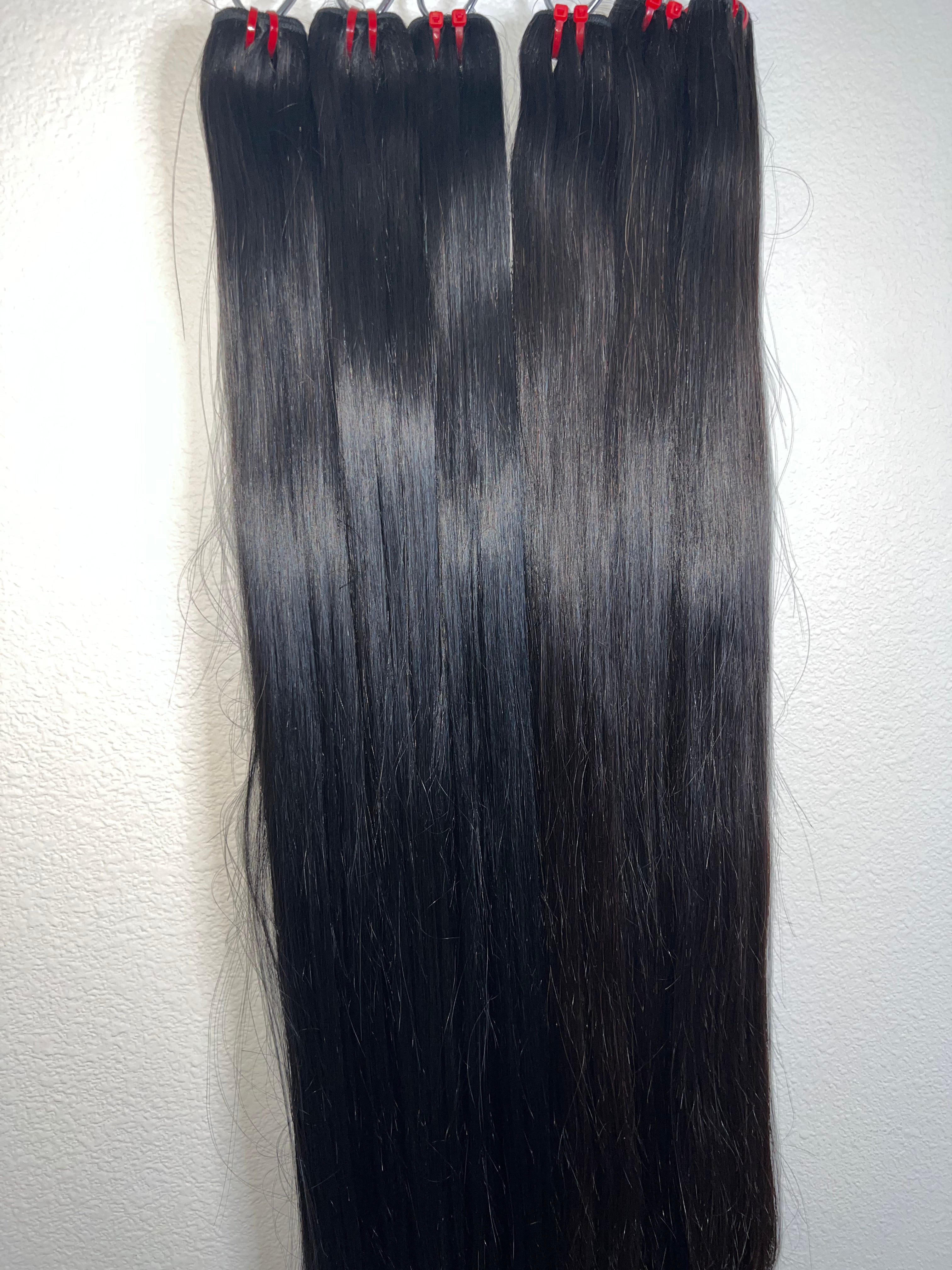 RAW means that the hair is UNPROCESSED which is the highest quality of hair that has never been chemically processed. It is human hair collected from one source or donor. The cuticles are intact and aligned in one direction which is why you dont see alot of fly away hairs. Also, raw hair is very luxurious and high maintenance. All bundles will not be the same color, some maybe brown some maybe darker etc. When you receive the hair I HIGHLY SUGGEST YOU WASH YOUR BUNDLES because the hair is a coarse texture which means its less silky, it needs moisture which may cause it to be a lil tangly. All of our bundles are Super Double Drawn meaning all hairs are 90% the same length, highest quality and full from top to bottom. Textures Raw Wavy & Raw Bone Straight for a Full install I suggest 3 bundles for lengths 16-26in and 4 bundles for lengths 28 on down. Raw Curly I suggest 3 bundles for any length you get because those bundles are super full with more wefts. With good care our bundles can last 2-3 years.